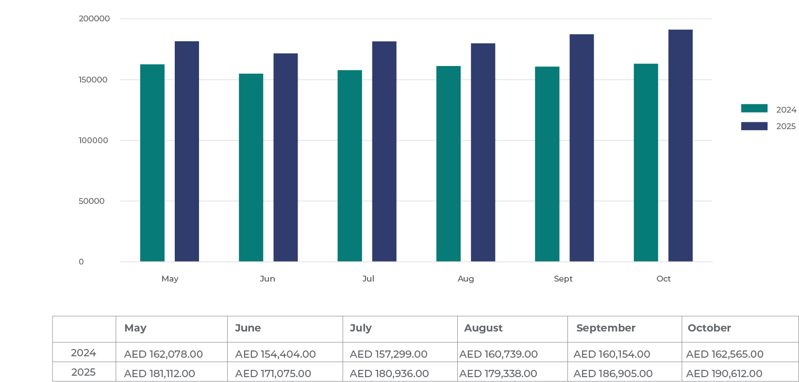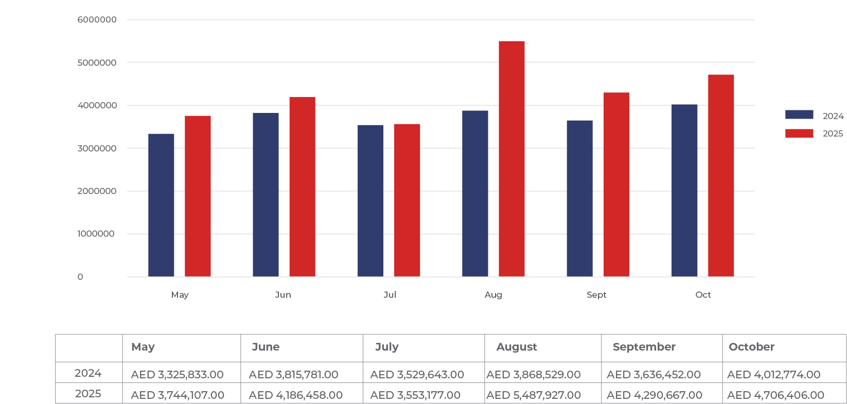 Arabian Ranches 3 recorded strong activity with 32 transfers, marking a 113%+ increase compared to the previous month. Transaction values ranged from a high of AED 8M to a low of AED 2.87M, with an average sale price of AED 4.7M. This surge in activity reflects increasing buyer confidence, driven by competitive pricing, modern villa layouts, and strong end-user demand within the community.