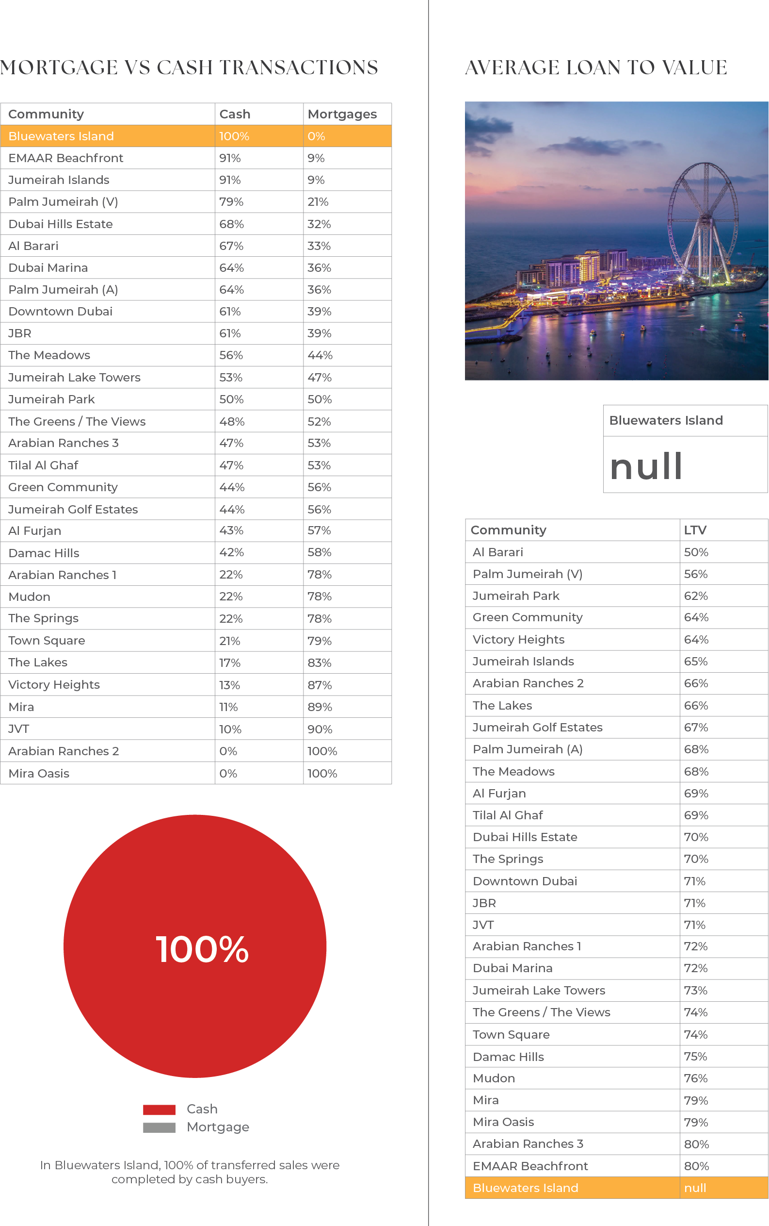 Mortgage Vs Cash Transactions&Average Loan to Value