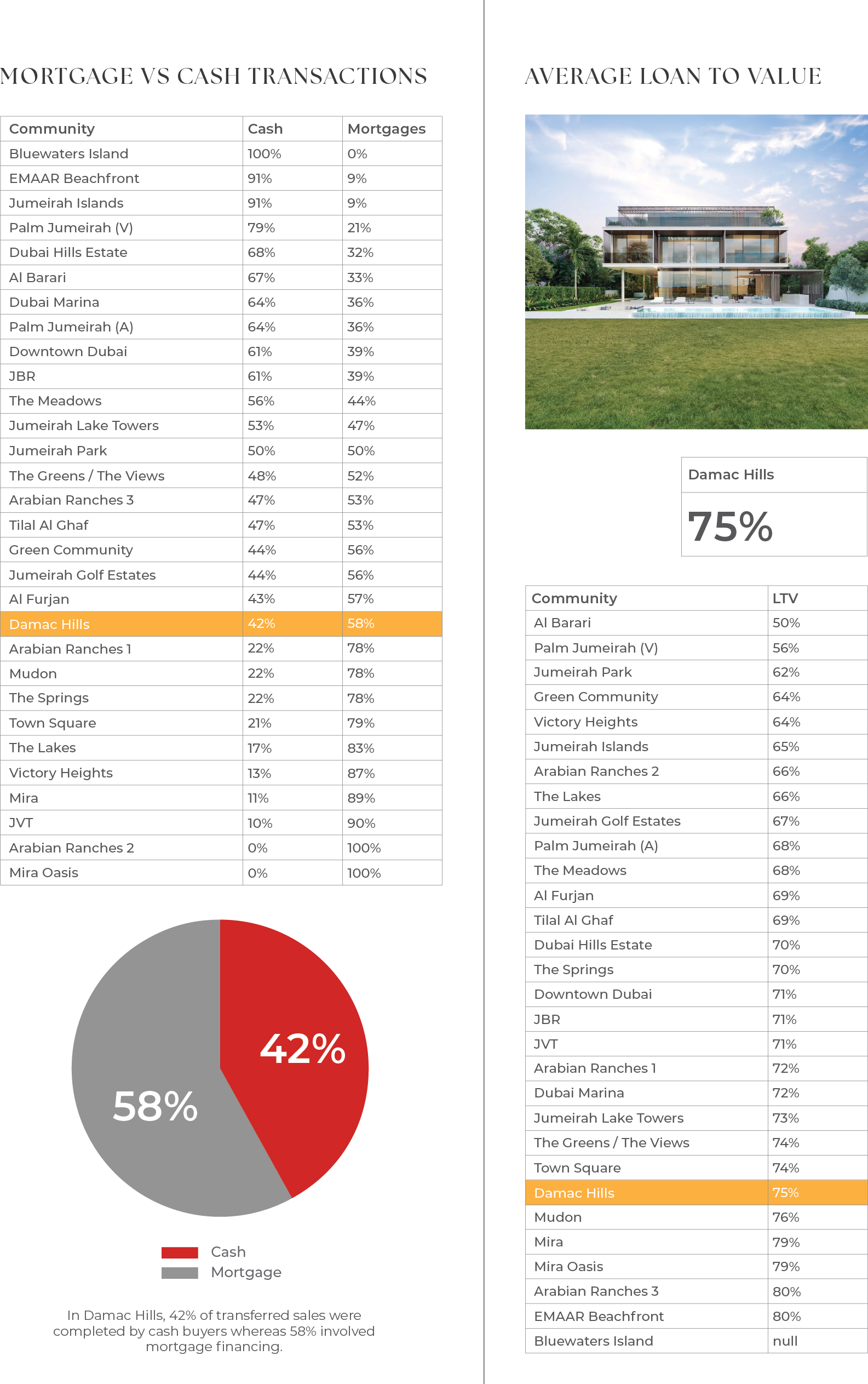 Mortgage Vs Cash Transactions&Average Loan to Value