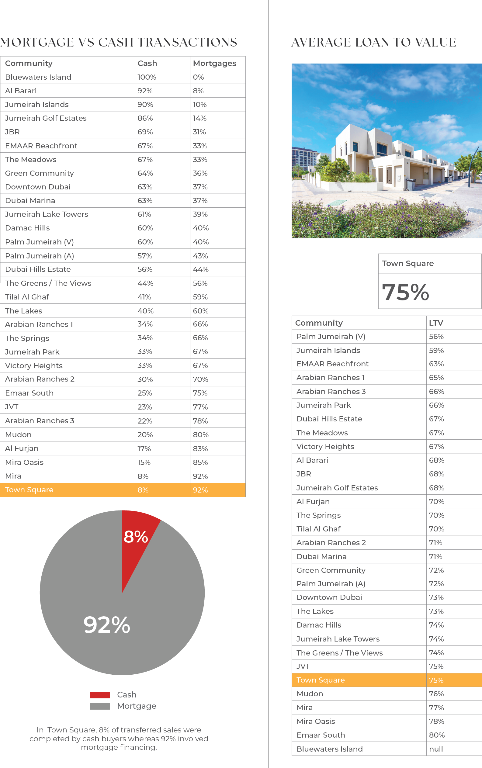 Mortgage Vs Cash Transactions&Average Loan to Value